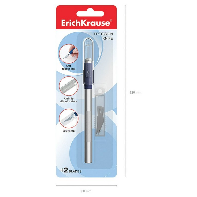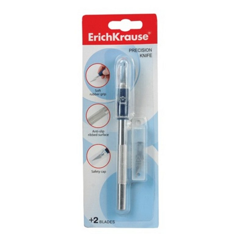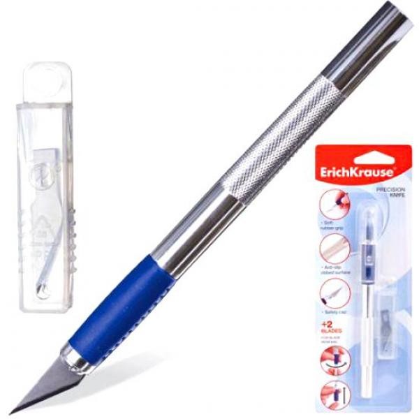 Нож-скальпель канцелярский Erich Krause металлический, c 2-мя запасными лезвиями, картонный блистер