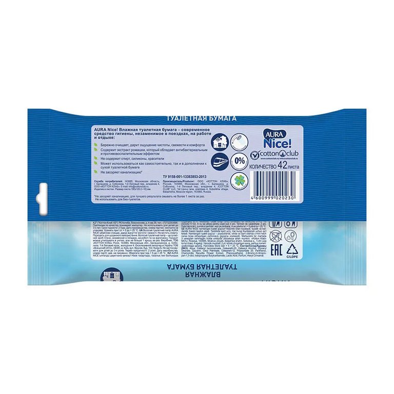 Туалетная бумага влажная Aura 42 шт/уп.