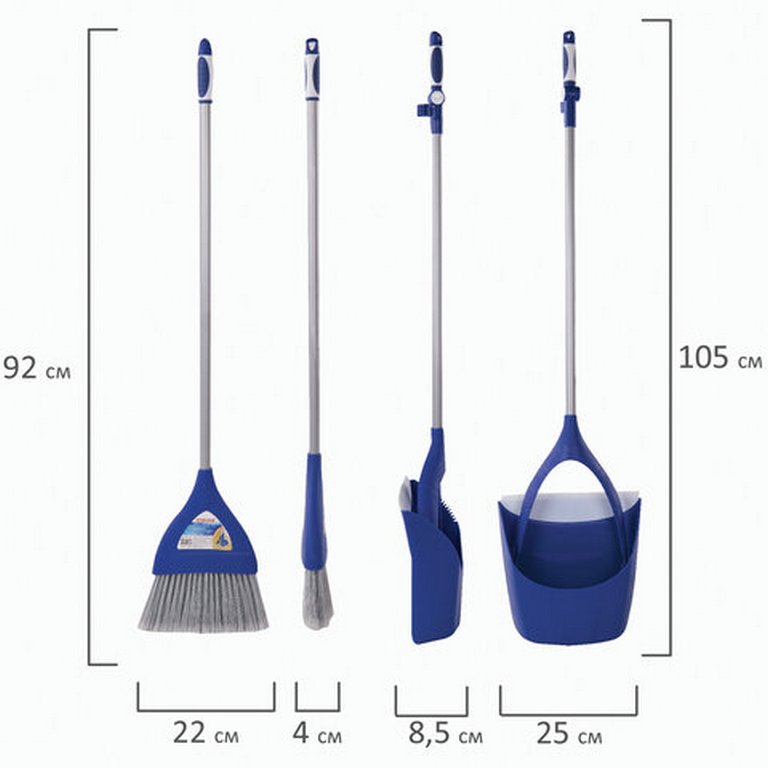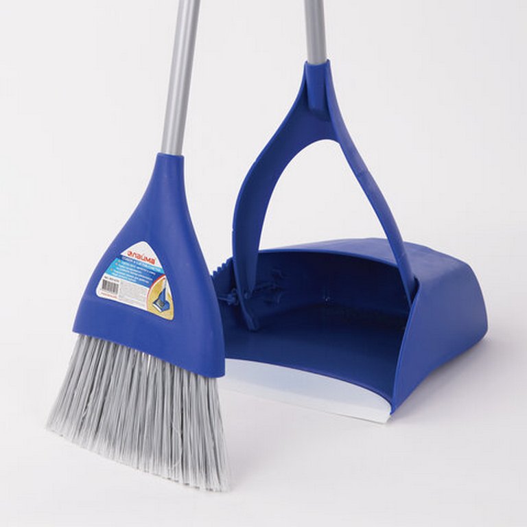Совок для мусора + щетка, L=66 см синий, LAIMA