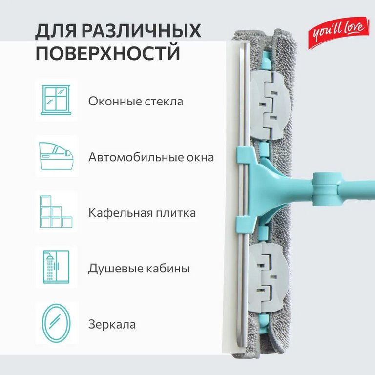 ручкой. Предназначена для качественной и удобной мойки окон, а также для очистки стеклянных и зеркальных поверхностей, керамической плитки.