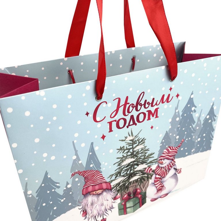 практичным изделием, которое может использоваться в повседневной жизни. Подарочный новогодний пакет изготовлен из ламинированного мелованного