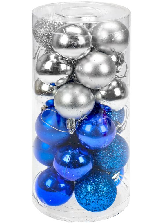 Набор шаров цвет ассорти 40 мм 25 шт "Новогоднее настроение" (синий/серебро)