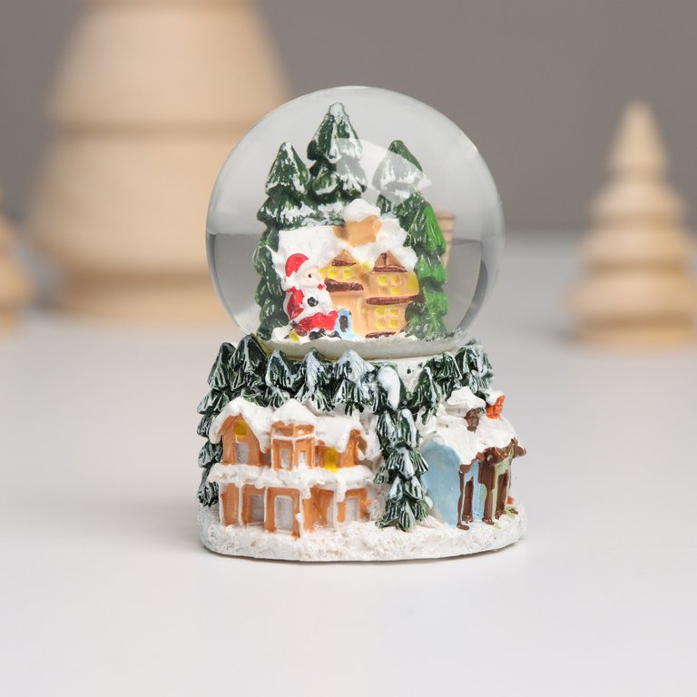 Водяной шар "Дед Мороз и заснеженный домик" 5х5х7,2 см (ассорти)