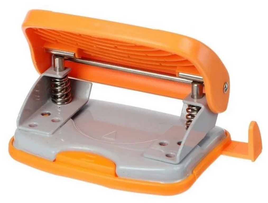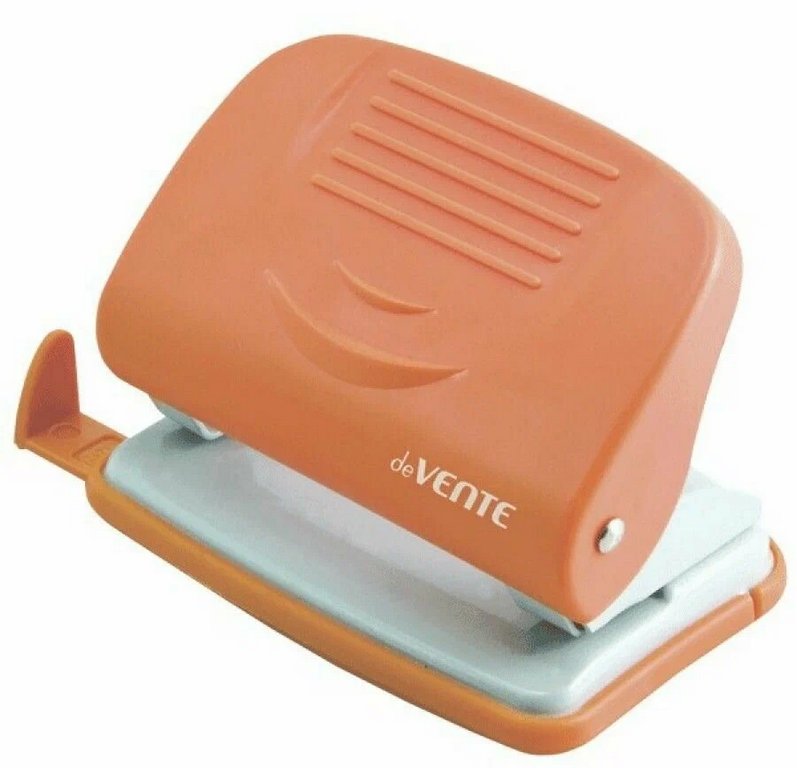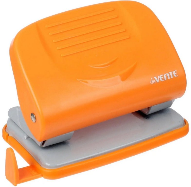 Дырокол до 20л пластик deVENTE "Neon" с линейкой, оранжевый