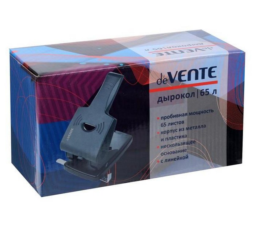 Дырокол до 65л пластик, deVENTE, с линейкой цв.черный