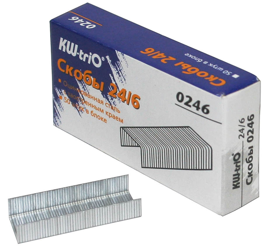 Скобы 24/6 KW-trio 1000 шт/уп, оцинкованные, до 30 листов