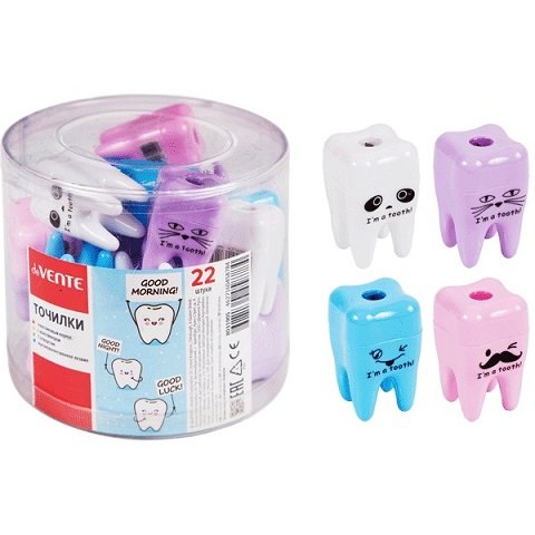 Забавная точилка deVENTE "Зубик" в виде веселых зубиков с контейнером для сбора стружки.