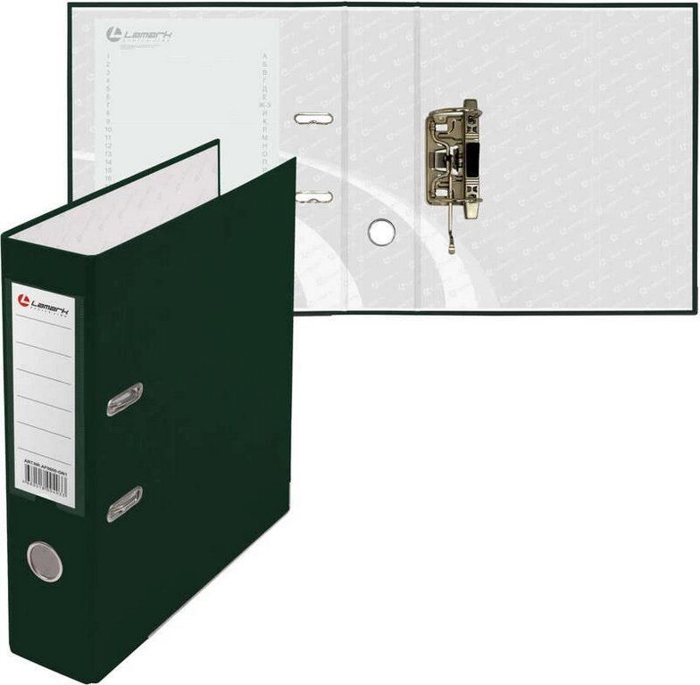 Папка-регистратор А4 80мм Lamark пл. карман на торце, метал. окантовка, зеленая