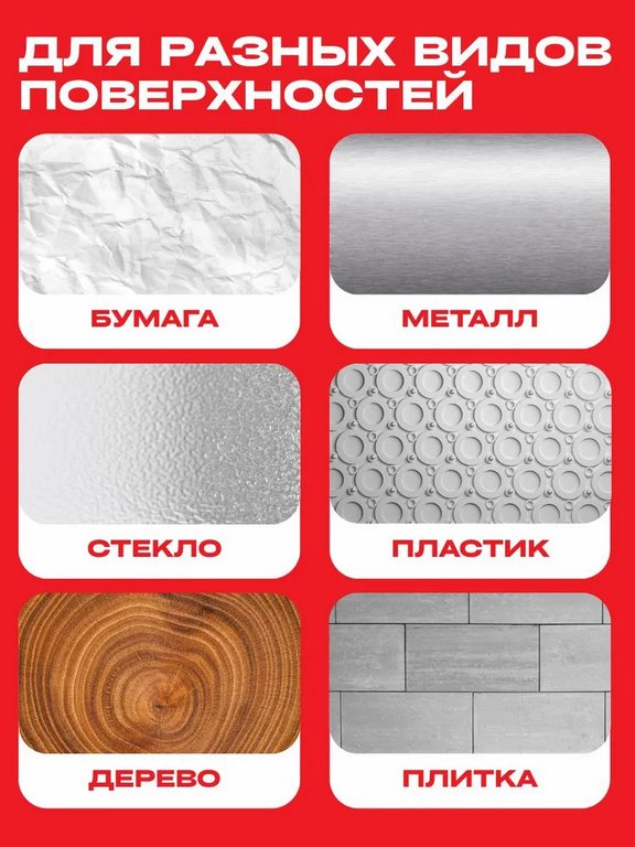 на любых поверхностях: стекло, металл, дерево, пластик, резина, кожа,