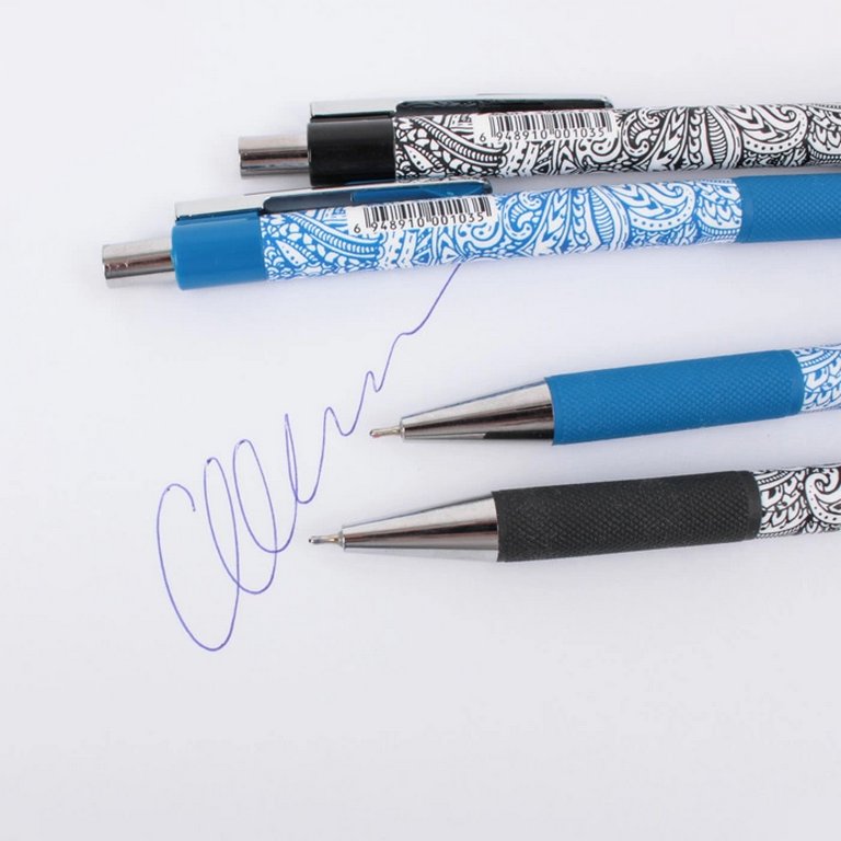 Ручка шариковая автоматическая с чернилами на масляной основе. Пишущий узел - 0,7мм. Длина стержня-107мм. Цвет чернил-синий. Рельефный резиновый держатель.
