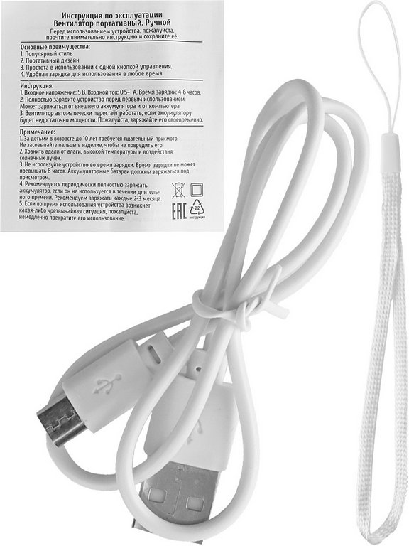 Вентилятор ручной "Ушки" USB, 6,5*3,5*14 см, белый/серый