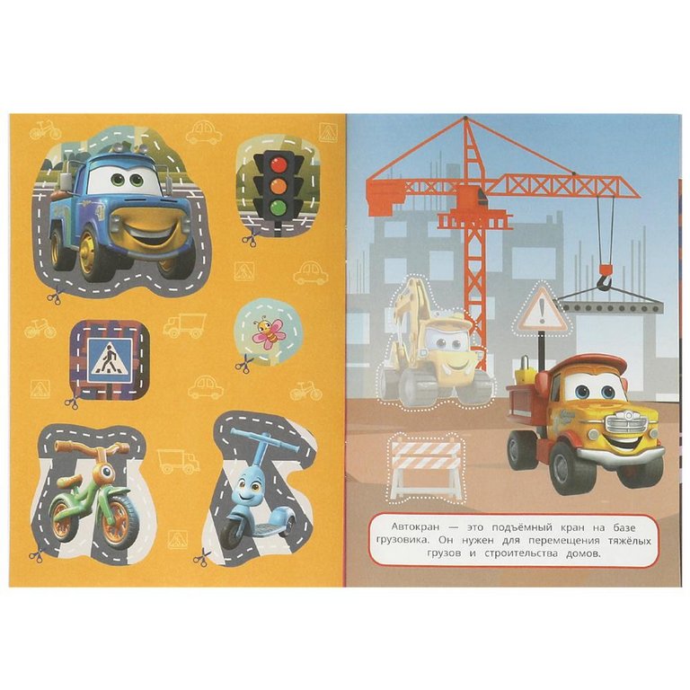 которой его ждут разнообразные машины. С помощью родителей он научится вырезать и приклеивать картинки разной формы, чтобы в дальнейшем самостоятельно изготавливать красивые аппликации.