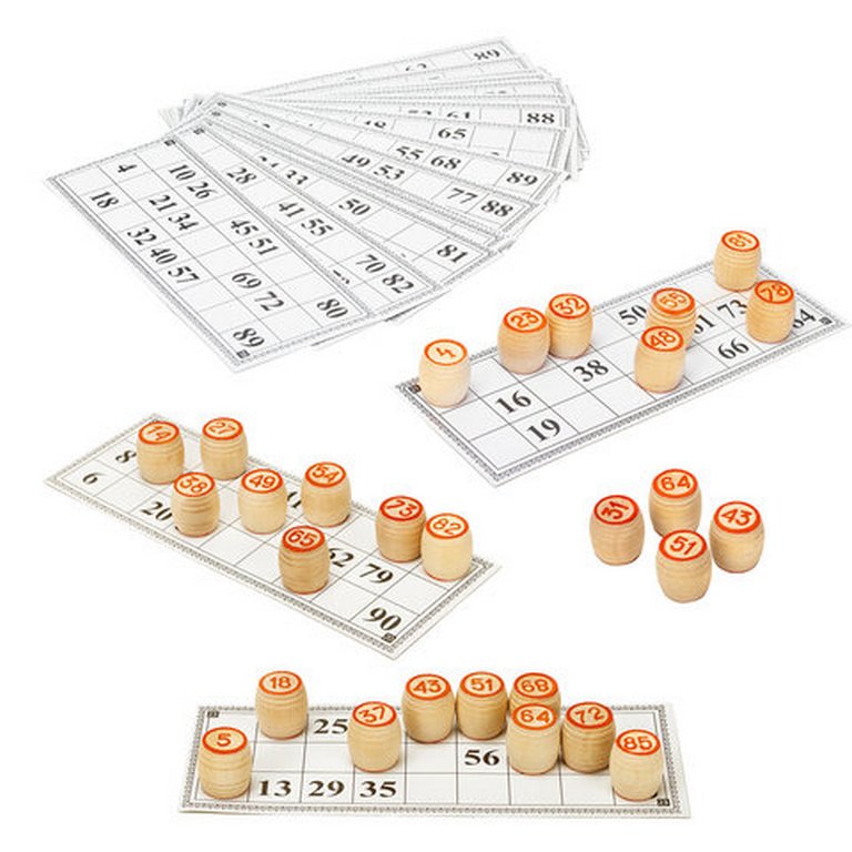 оформленных в классическом стиле деревянных бочонков, упакованных в бязевый мешочек с завязками, 57 картонных заставок, 24 картонные карточки с числами.