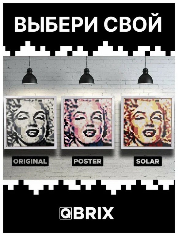 QBRIX Poster представляет собой уникальный конструктор, который позволит собрать сделанную на смартфон фотографию или любое изображение в стиле пиксель-арт.