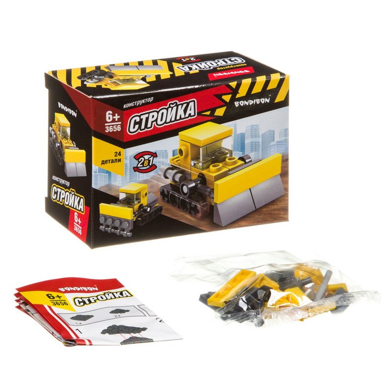 Собери машину, чтобы играть в стройплощадку! Блочный конструктор БУЛЬДОЗЕР из коллекции СТРОЙКА от Bondibon развивает мелкую моторику, мышление и дает детям большой простор для фантазии!