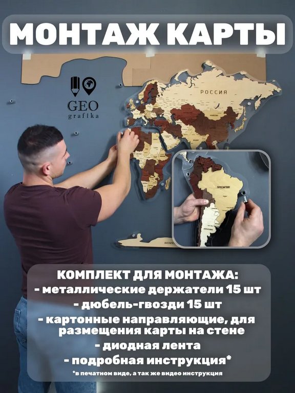 Карта мира настенная деревянная 3D многоур 160*1 "Сафари Премиум" Geografika