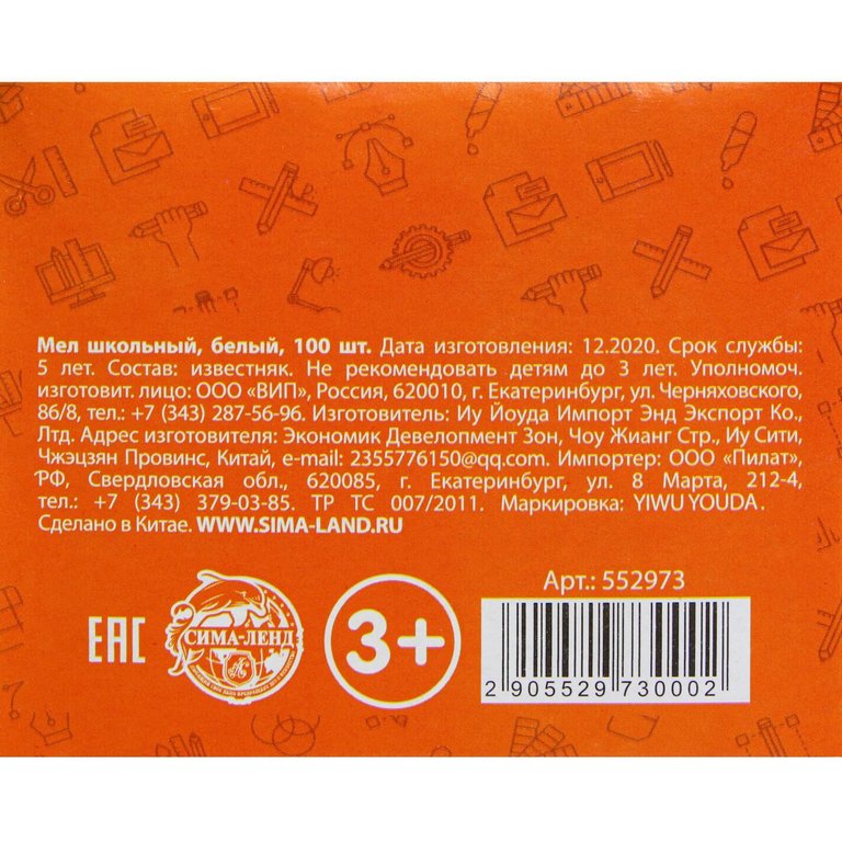 Мел школьный белый 100шт. Calligrata
