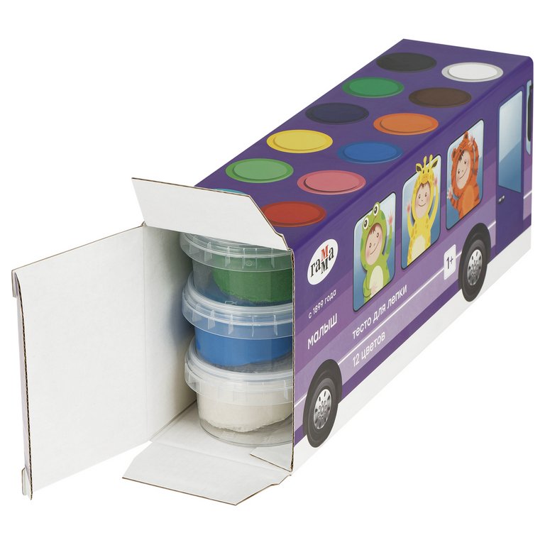 Тесто для лепки 12 цв. 720 гр Гамма "Малыш. Автобус"