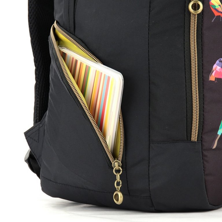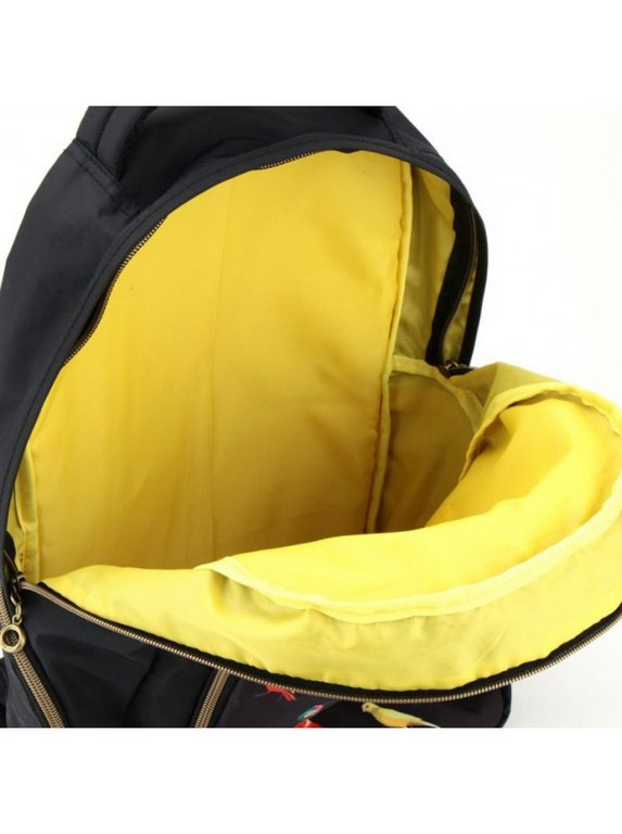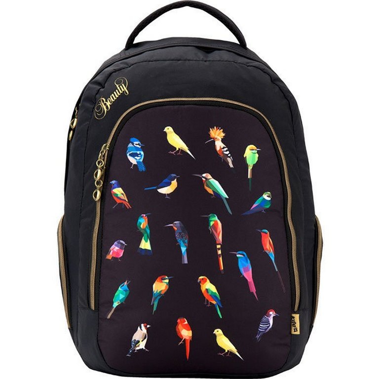 - Рюкзак дополнен стильной фурнитурой высокого качества: декоративной вышивкой с надписью и птичками, а также прочными металлическими молниями с узорными хвостиками.