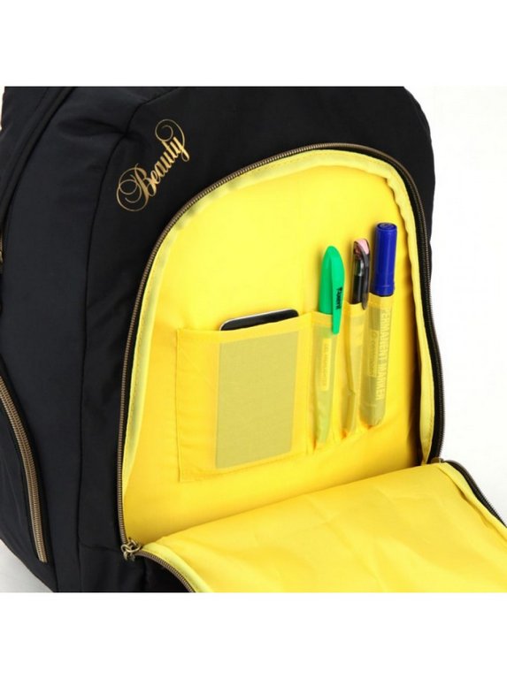 - Внутри просторного основного отделения можно сложить несколько книг и аксессуаров, а снаружи размещен большой кармашек с органайзером для канцелярских принадлежностей.
